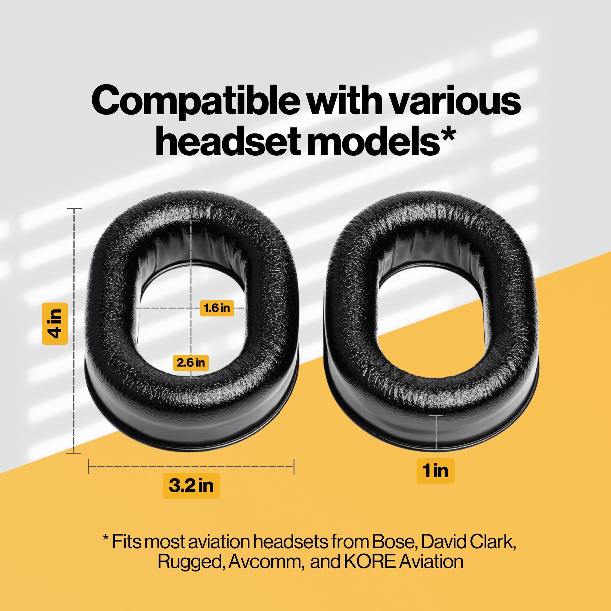These ear pads are compatible with most aviation headsets from top brands like Bose, David Clark, Rugged, Avcomm, and KORE Aviation.